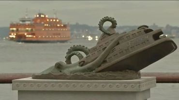 It was close to 4am on the quiet morning of November 22, 1963 when the Steam Ferry Cornelius G. Kolff vanished without a trace. On its way with nearly 400 hundred people, mostly on their way to work, the disappearance of the Cornelius G. Kolff remains both one of New York’s most horrific maritime tragedies and perhaps its most intriguing mystery. Eye witness accounts describe “large tentacles” which “pulled” the ferry beneath the surface only a short distance from its destination at Whitehall Terminal in Lower Manhattan. Nobody on board survived and only small pieces of wreckage have been found…strangely with large “suction cup-shaped” marks on them. The only logical conclusion scientists and officials could point to was that the boat had been attacked by a massive octopus, roughly half the size of the ship. Adding to the tragedy, is that this disaster went almost completely unnoticed by the public as later that day another, more “newsworthy” tragedy would befall the nation when beloved President John Fitzgerald Kennedy was assassinated. The Staten Island Ferry Disaster Museum hopes to correct this oversight by preserving the memory of those lost in this tragedy and educating the public about the truth behind the only known giant octopus-ferry attack in the tri-state area.