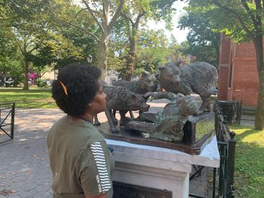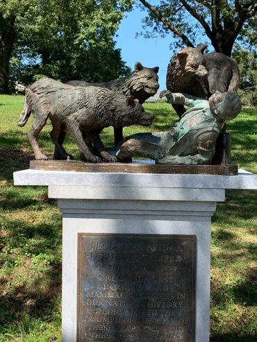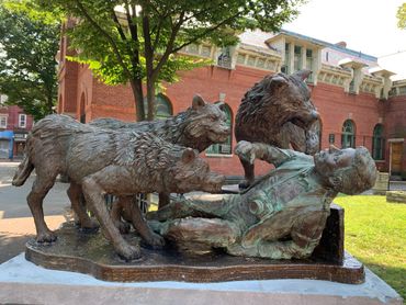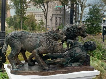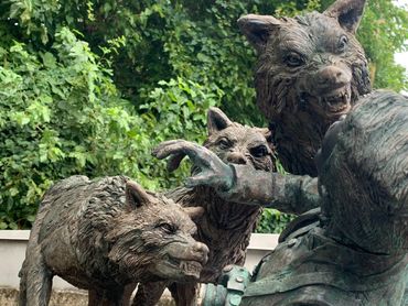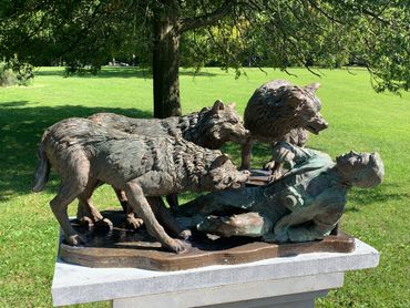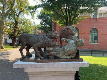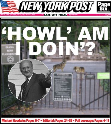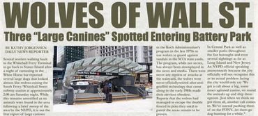 In the late 1970s, New York Mayor Edward I. Koch launched an unprecedented campaign against subway graffiti. The city employed new guardians to patrol its vast train yards—wolves. Captured from upstate New York and set loose in various borough depots, the wolves successfully kept taggers at bay until anti-graffiti technology eliminated the need for the animals. At that point, the wolves migrated underground. Since then, wolf packs have survived and even thrived in New York’s labyrinthine tunnels, emerging in local parks only on occasion to hunt in the moonlight for live prey. In fact, the NYPD chalks up the majority of missing tourist reports each year to the city’s subterranean canine inhabitants. Today, The Ed Koch Wolf Foundation in partnership with the NYC Fellowship is erecting monuments in city parks to serve as cautionary reminders to out-of-town visitors. When in NYC, visit our many beautiful green districts. Just let these stunning statues remind you as to why we close our parks at night. Statues are funded with the help of the public through the gift shop.